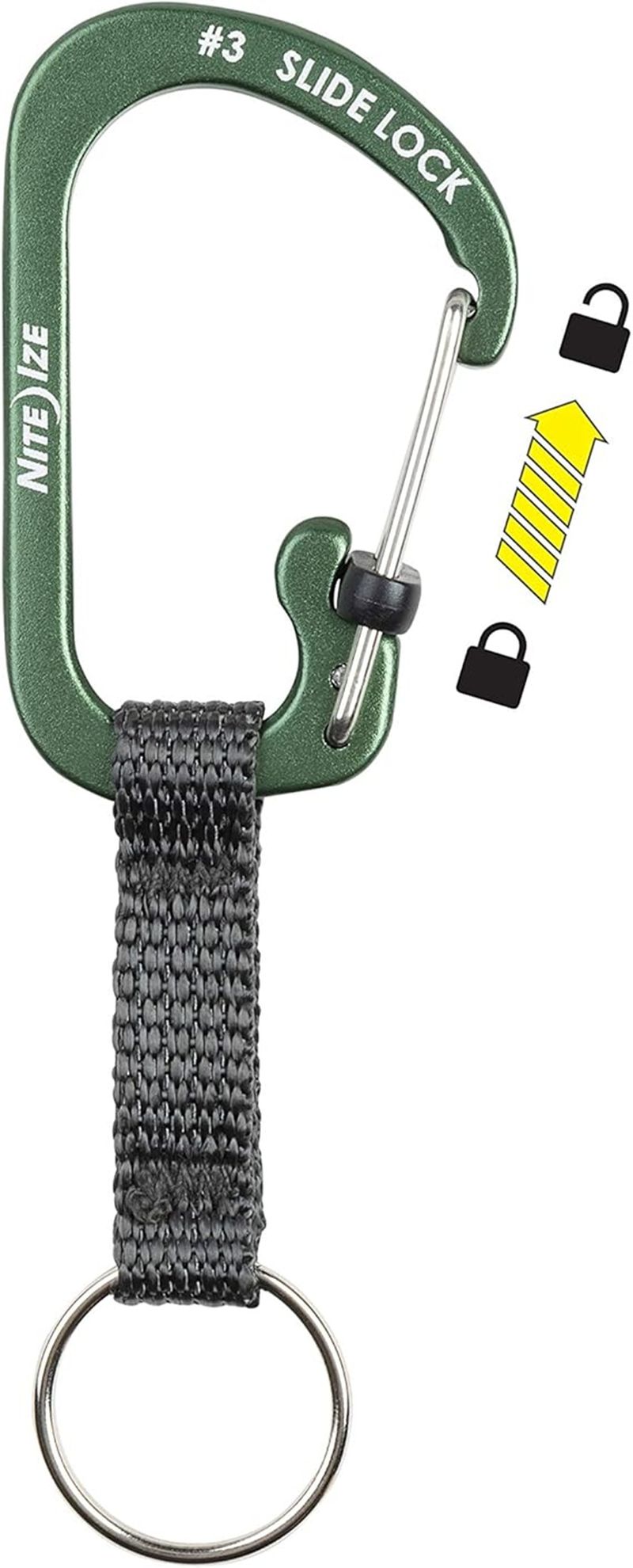 El Mosquetón Llavero Nite Ize SlideLock® #3 en color oliva combina seguridad, estilo y practicidad en un accesorio indispensable para la vida diaria. Fabricado en aluminio ligero y resistente, no es simplemente un llavero, sino una solución funcional y elegante para mantener sus llaves y pequeños objetos organizados y siempre seguros.