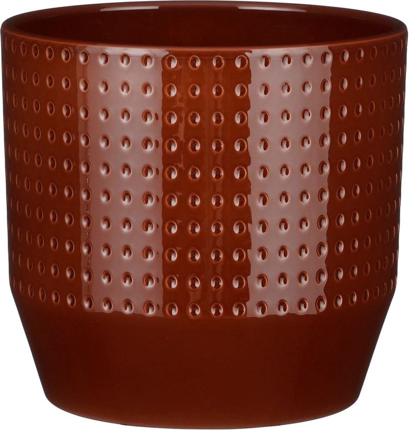 Su cautivador tono terracota brillante y diseño texturizado en relieve hacen de esta maceta una verdadera obra de arte.