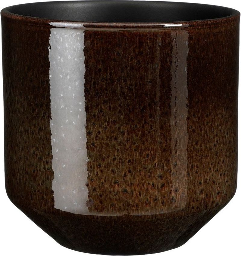 una pieza de cerámica con cálidos tonos marrones y un exclusivo acabado flameado que aporta un aspecto auténtico y sofisticado.