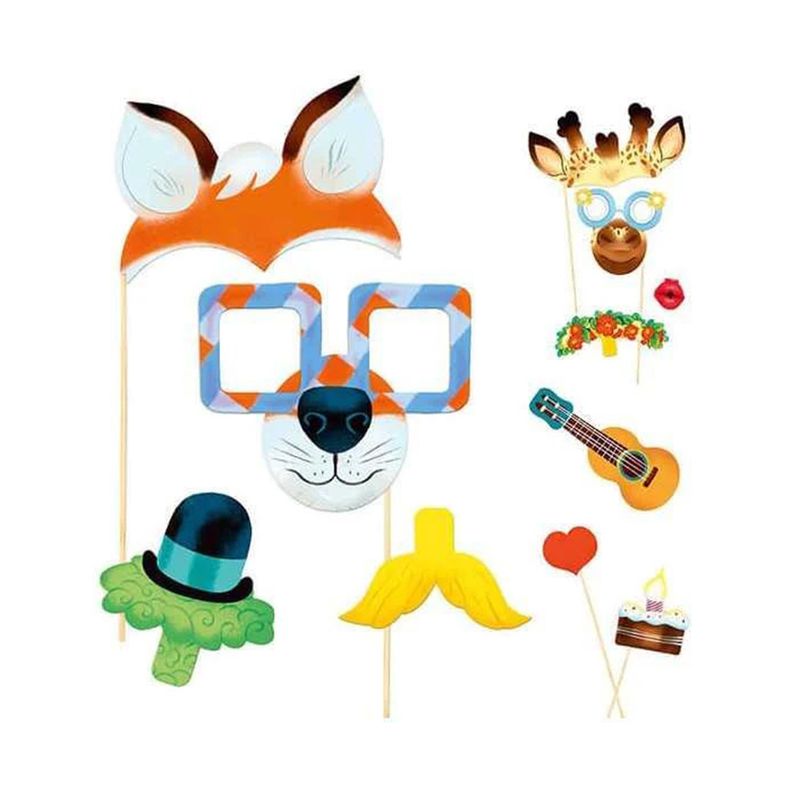 Con esta hermosa caja de 40 divertidas piezas de disfraces, crea tu propio fotomatón de animales. Elige tu disfraz favorito, sombrero, bigote, gafas, ¡y así va la fiesta de los animales!