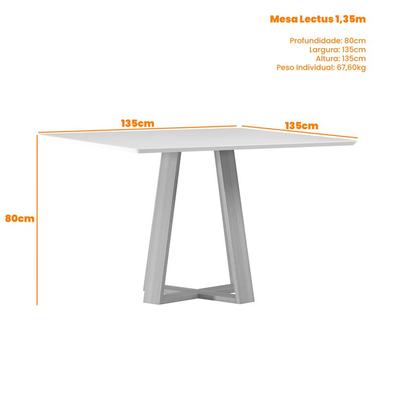 Mesa cuadrada lectus vidrio blanco 1350x1350mm