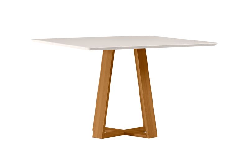 Mesa cuadrada lectus vidrio blanco 1350x1350mm • Base: Eucalipto • Cubierta: MDF 25mm con Vidrio 3mm