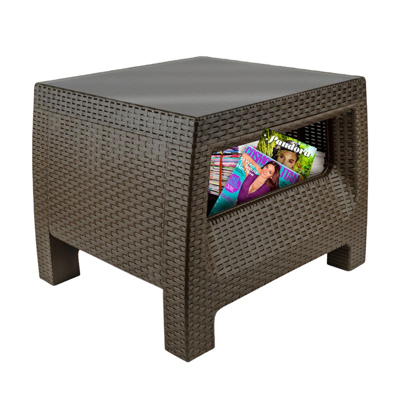 Mesa de centro tavarua 50x50 ratan c/ vidrio templado ESPECIFICACIONES: • Largo: 58 cm • Ancho: 50 cm - Alto:46 cm DETALLES: • Ratan con vidrio templado • Marca: Rey Plast