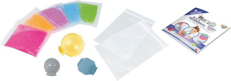 Un kit con que hacer pelotas saltarinas de cualquier color. ¡Algunas incluso brillan en la oscuridad! Incluye : 5 bolsitas de polvo de polvo elástico y un folleto ilustrado en color describiendo diversas actividades. A partir de los 8 años.