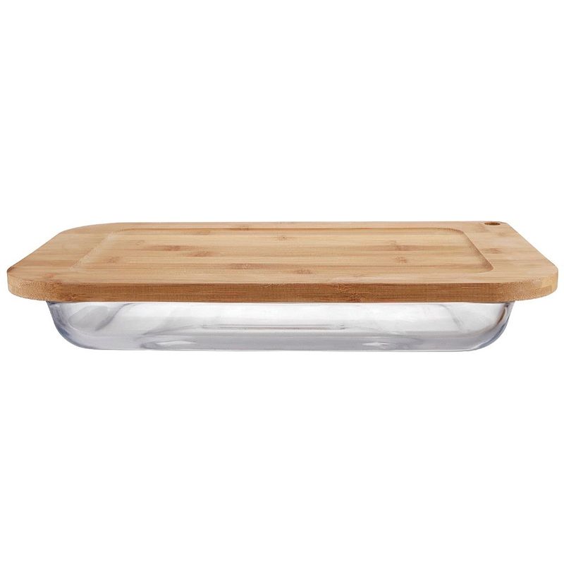 Material: vidrio de borosilicato de alta calidad + tapa de bambú. Capacidad: 3 litros.