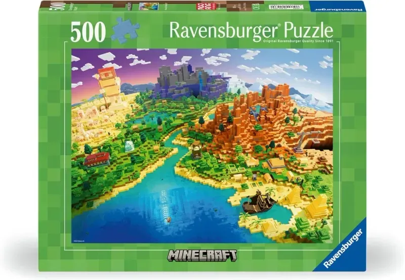 Contenido: 1 rompecabezas de 500 piezas. Diseño: Imagen pixelada inspirada en el universo Minecraft. Edad recomendada: 10 años en adelante. Beneficios: Desarrolla la coordinación, la observación y el pensamiento lógico.