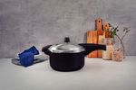 Cuerpo de aluminio con espesor de 3,2 mm, que proporciona una cocción rápida y uniforme. Con revestimiento interno y externo de antiadherente Starflon Max que no se pega, es fácil de limpiar, más durable y no es perjudicial a la salud, ya que está libre de PFOA.