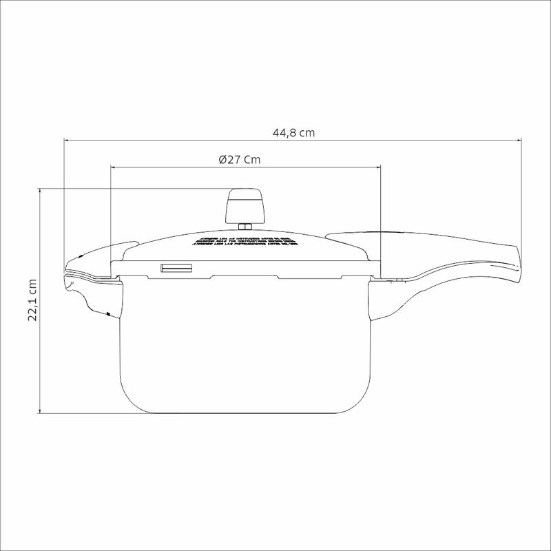 Tapa de aluminio con acabado externo cepillado y interno satinado. Los mangos de baquelita resistentes al calor superiores e inferiores proporcionan seguridad durante la manipulación. Tramontina, debido a la continua evolución de sus productos, se reserva el derecho de modificar las características generales, técnicas y estéticas sin previo aviso.