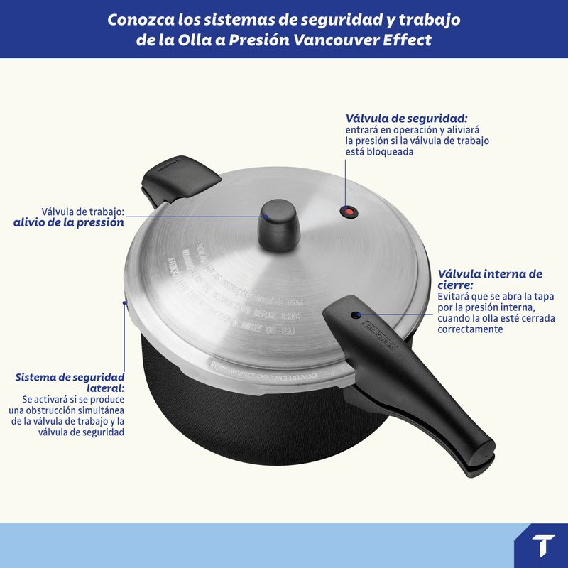 Tenga en cuenta: esta sartén no es compatible con cocinas de inducción. Olla a presión Vancouver Effect Tramontina con presión de trabajo 80 kPa.