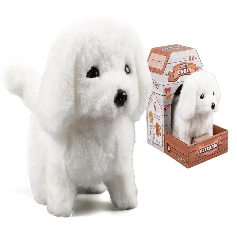 Un lindo caniche blanco que camina y ladra como uno real. Perfecto para juegos de simulación.