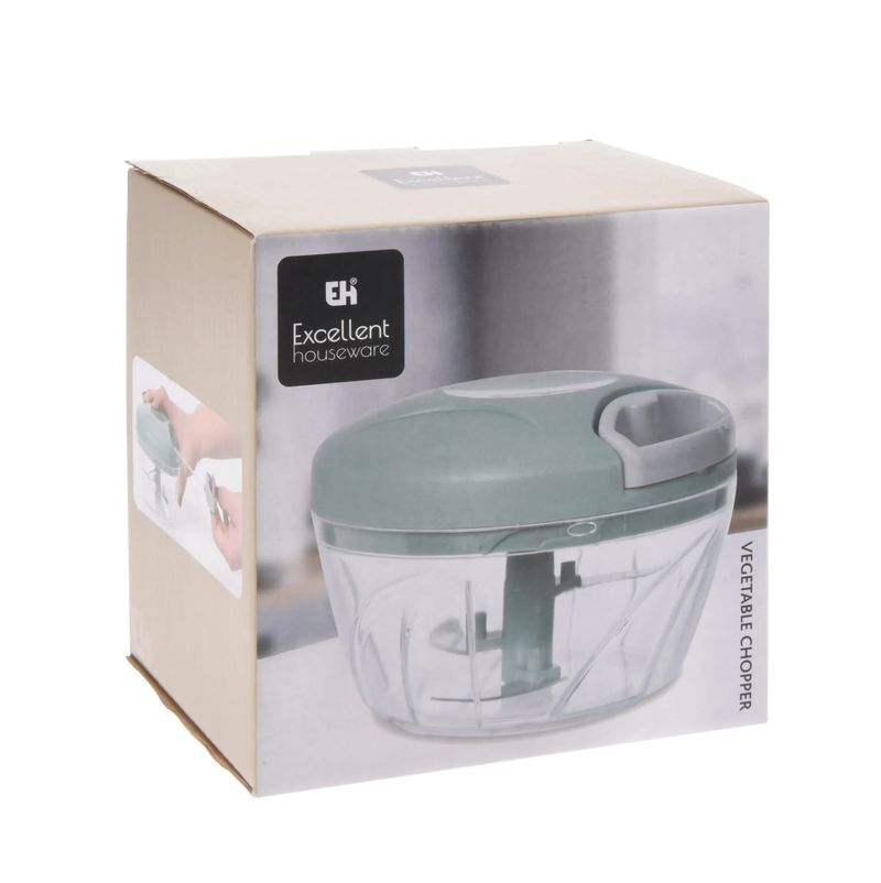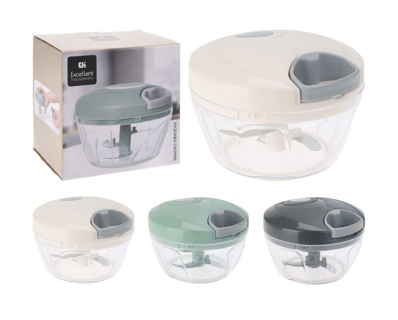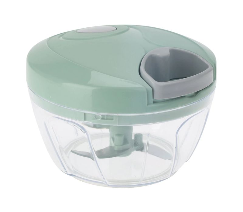 Fabricado con materiales resistentes y de fácil limpieza: recipiente de plástico PS transparente para ver el contenido, tapa de PP y cuchillas duraderas de acero. Disponible en tres colores modernos (verde, gris y claro) que combinan con cualquier estilo de cocina.