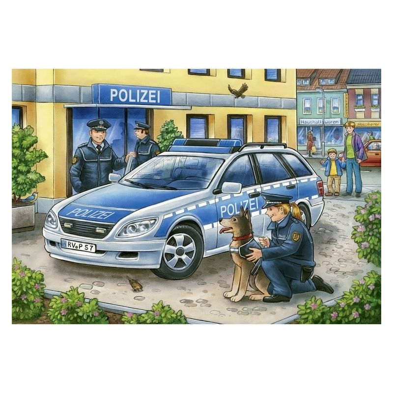 Contenido: 2 rompecabezas de 12 piezas cada uno. Diseño: Escenas de acción con policías y bomberos en servicio. Edad recomendada: 3 años en adelante. Beneficios: Promueve el juego imaginativo y el reconocimiento de profesiones