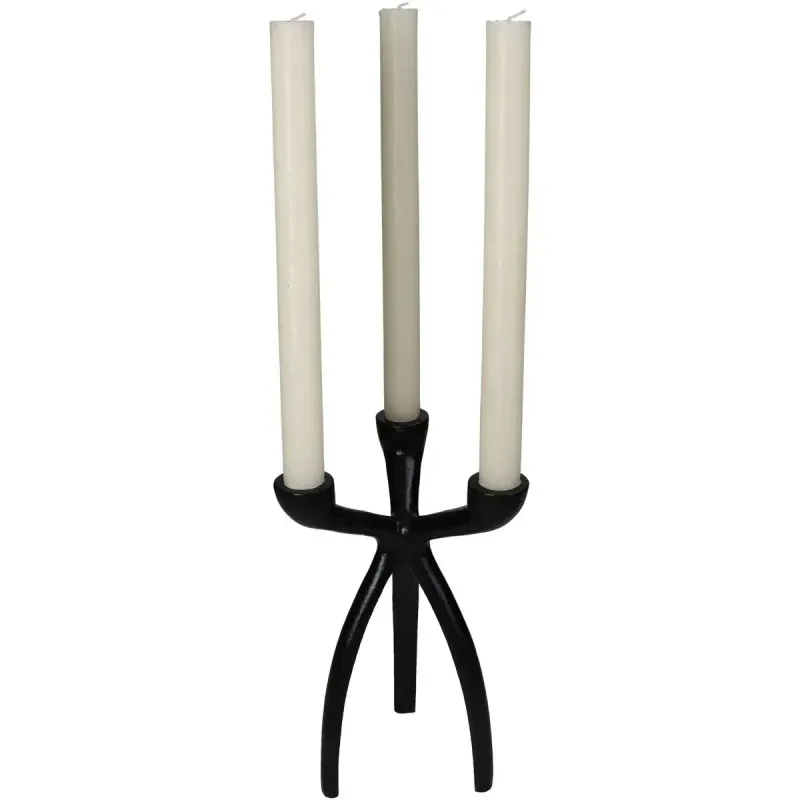 El Porta Vela Triple de Aluminio Negro es la combinación perfecta de elegancia y funcionalidad. Su diseño moderno y minimalista, con acabado en negro, aporta un toque sofisticado a cualquier espacio. Fabricado en aluminio resistente, garantiza durabilidad y estabilidad, permitiendo realzar la belleza de las velas con estilo.