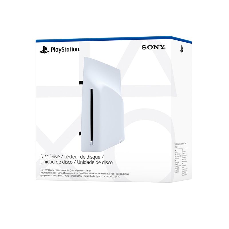 Unidad de disco para consolas PS5® Digital Edition (Slim) Descubra juegos y películas en discos Blu-ray™ Agregue una unidad de disco a su consola PlayStation®5 Edición Digital (Slim) TANTOS JUEGOS Juega juegos de PS5® y un amplio catálogo de títulos de PS4® compatibles en discos Blu-ray™. ENTRETENIMIENTO INCREÍBLE Disfrute viendo películas y programas en discos Blu-ray™, discos Blu-ray™ y DVD 4K Ultra HD. *Este producto es solo para consolas PS5 Edición Digital (Slim) La Unidad de Disco reproducirá discos Blu-ray™, discos Blu-ray y DVD 4K Ultra HD. Se requiere conexión a Internet para emparejar la unidad de disco y la consola PS5 durante la configuración.