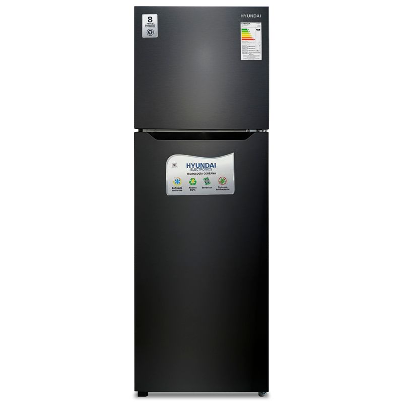 Refrigerador HYUNDAI Capacidad de 360 Litros Hielo Seco Color Black Inox Dos Puerta.