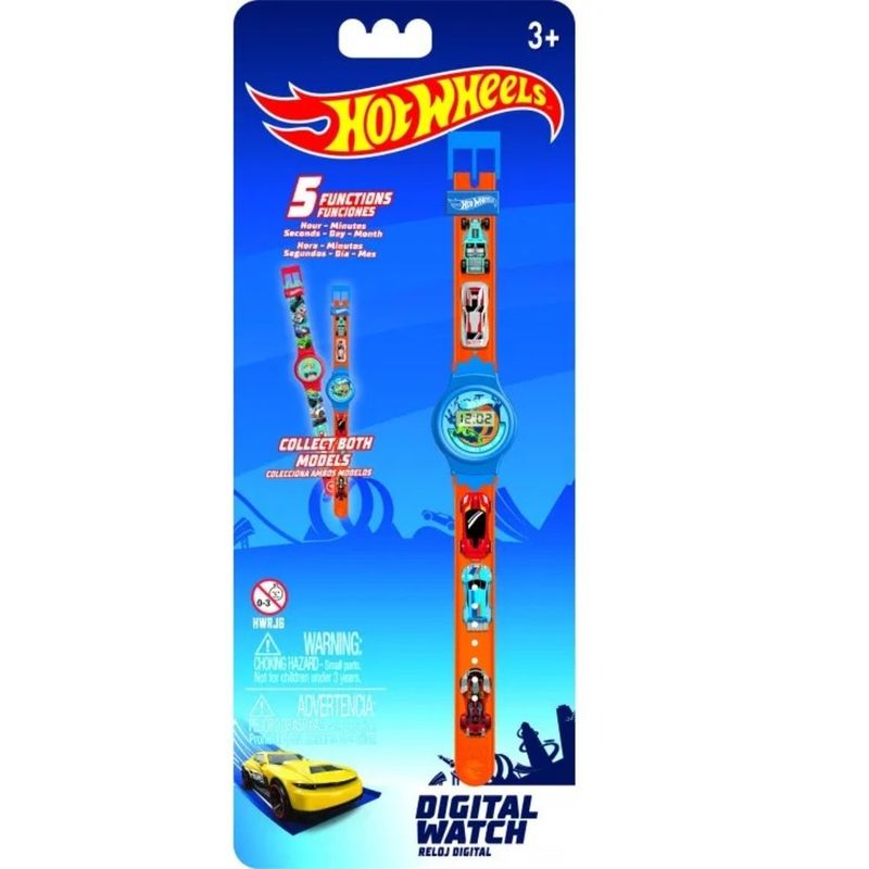 Reloj digital Hot Wheels con diseño dinámico y pantalla clara. Ideal para aprender la hora con un toque de velocidad.