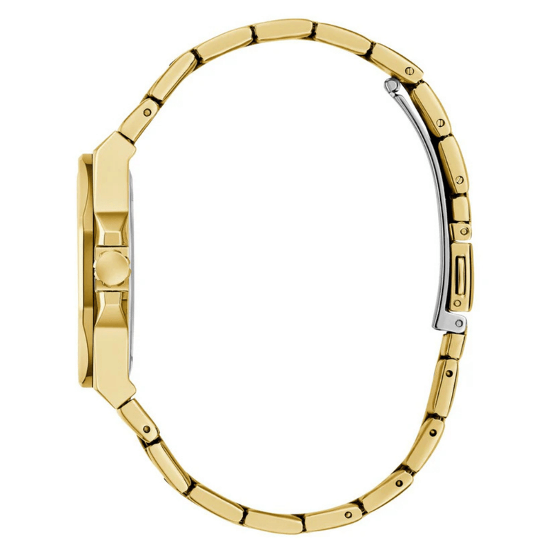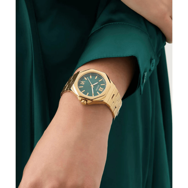 El Guess GW0873L2 de la colección Empress es un reloj llamativo y elegante para mujer que combina una estética atemporal en tonos dorados con una audaz y contemporánea esfera verde. Su acabado pulido, los exclusivos detalles de la caja (como las asas octogonales) y la vibrante esfera lo convierten en una pieza destacada, ideal tanto para reuniones de negocios como para salidas informales. Su fiable movimiento de cuarzo y su resistencia al agua de 5 ATM lo convierten en un accesorio práctico para la mujer moderna.