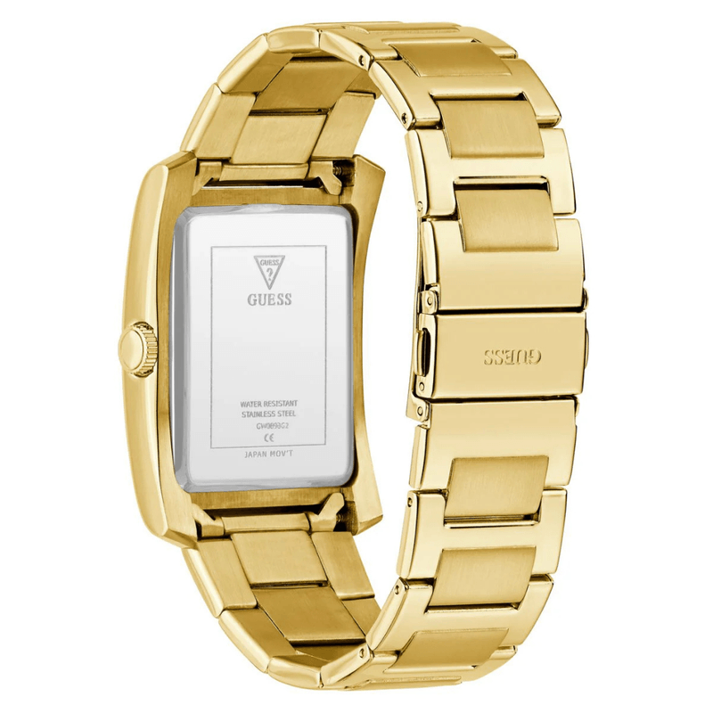 Presenta un diseño clásico y refinado con un toque moderno, caracterizado por una radiante caja de acero inoxidable en tono dorado y un brazalete a juego. Su distintiva forma rectangular o cuadrada le confiere un sofisticado estilo de tanque. La esfera negra ofrece un contraste marcado y elegante.