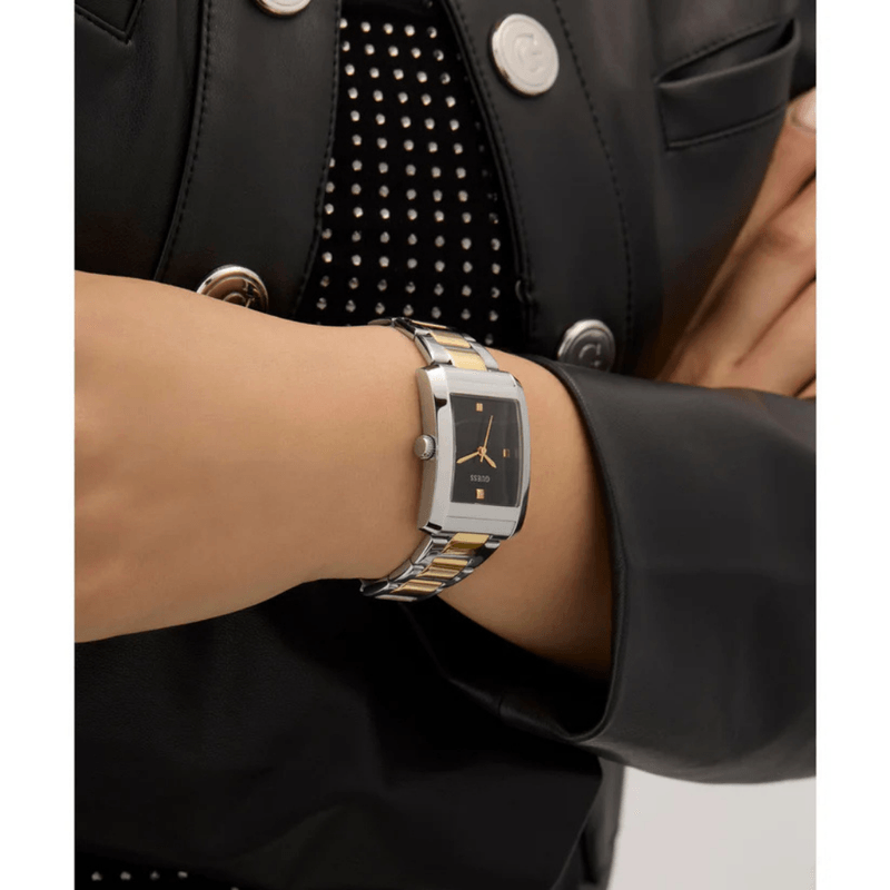 Agregue un toque de estilo clásico a su guardarropa de relojes con este nuevo estilo de tanque que presenta un diamante genuino a las 12 en punto y una elegante pulsera pulida.