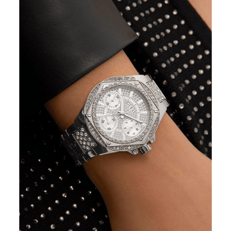 El Guess GW0878L1 es un elegante reloj analógico para mujer, parte de la colección "Contessa" , conocido por su elegante diseño que combina elementos clásicos y contemporáneos. Este modelo en particular destaca por su sofisticado acabado plateado y, a menudo, su distintiva caja cuadrada o de forma cojín .