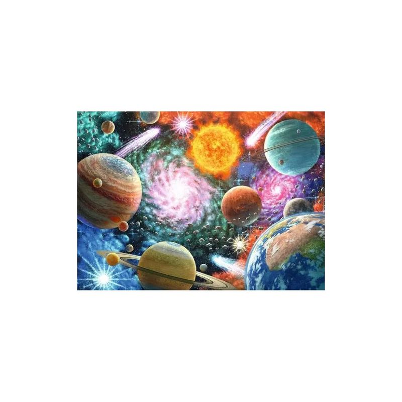 Contenido: 1 rompecabezas de 100 piezas XXL. Diseño: Colorida ilustración del espacio con planetas, cohetes y astronautas. Edad recomendada: 5 años en adelante. Beneficios: Estimula la imaginación y el interés por la ciencia y el espacio.