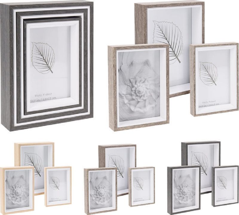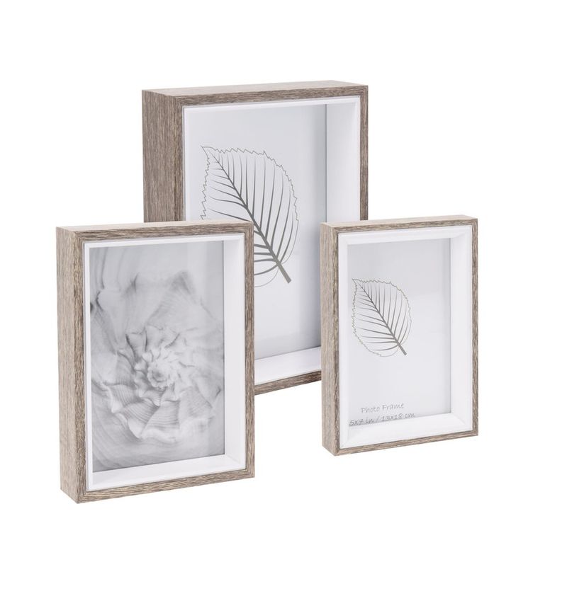 Conjunto de tres marcos de fotos de diferentes tamaños, ideales para colocar en orientación vertical u horizontal.