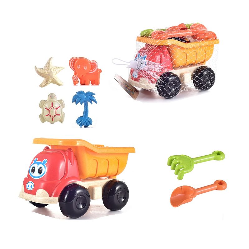 Diversión garantizada en la arena. Incluye coche de juguete, palas, rastrillos y moldes para construir y explorar.