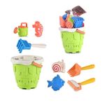 Todo lo necesario para una tarde de juegos en la playa o arenero. Incluye balde, moldes y herramientas de arena.