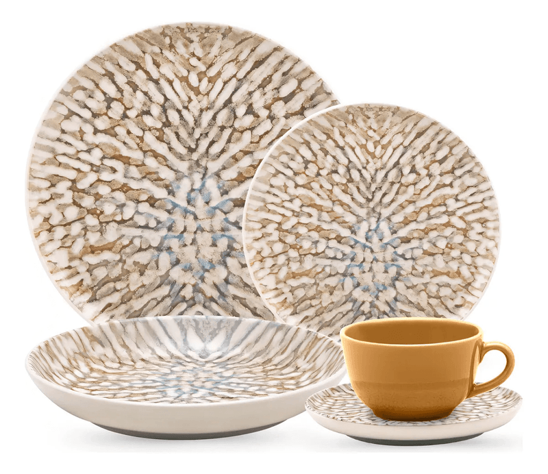 Set de vajilla diseñada con detalles elegantes, florales y composición de cerámica. Veinte piezas que complementarán tu mesa al presentar tus mejores recetas.