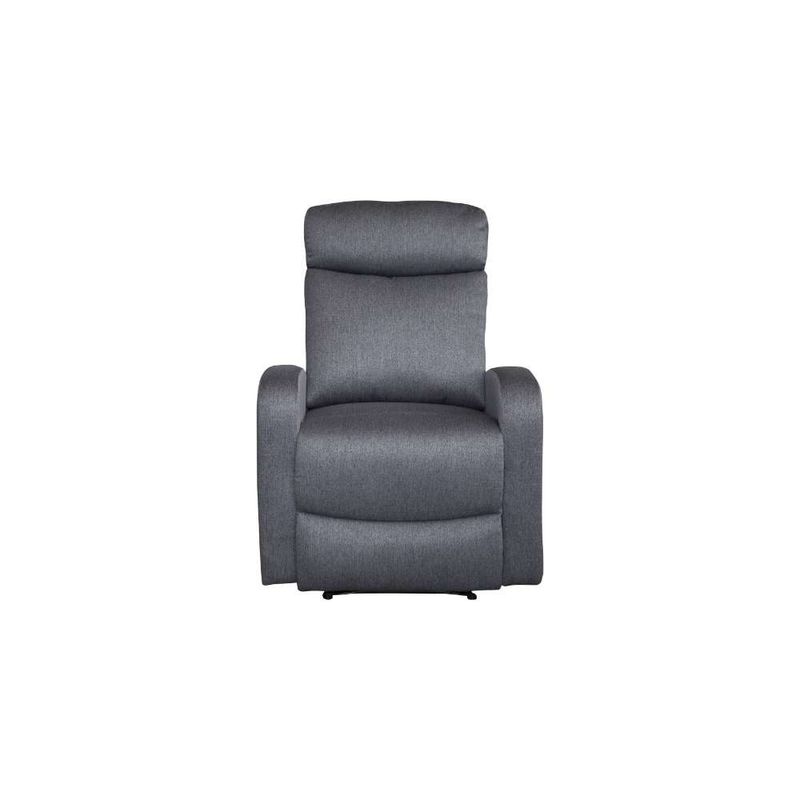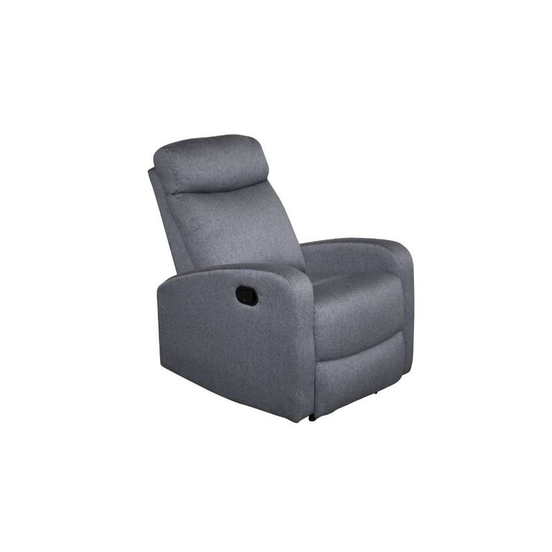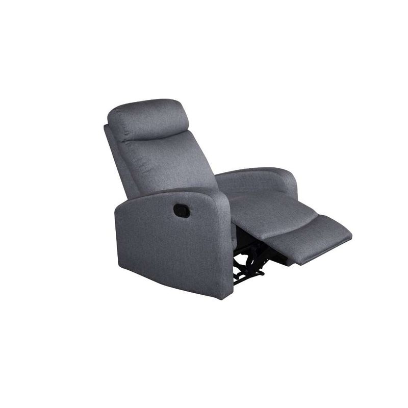 Sofá reclinable 1pts tela gris sandoval • Sofá individual con 1 sillón manual reclinable • Materiales: tela de poliéster, espuma, estructura de contrachapado, muelles ensacados. • Capacidad de peso: 110 kg.