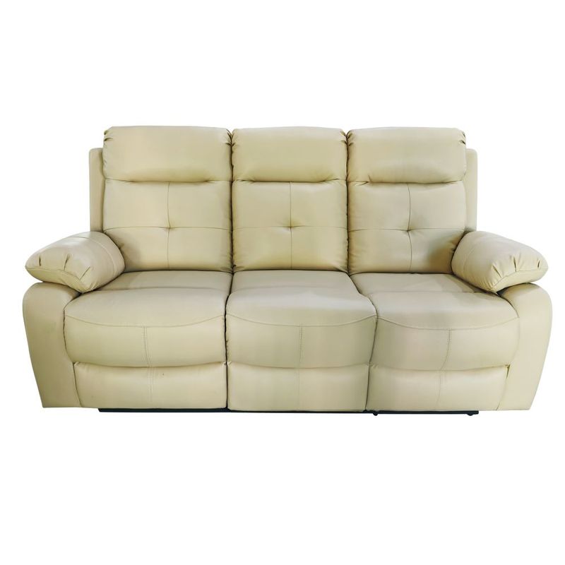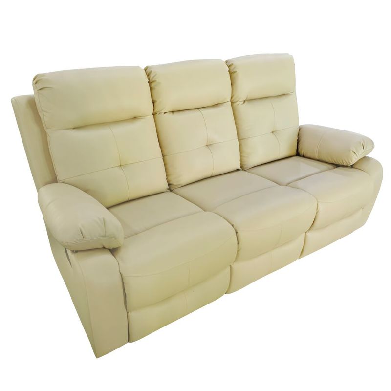 Sofá reclinable 3pts cuero eco beige cortona • Sofá de tres plazas con 2 reclinables manuales • Material: cuero aislado, PVC, espuma, estructura de madera noble • Capacidad máxima de carga: 480 kg