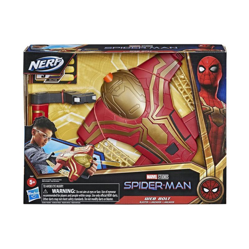 ¡Destruye a los villanos malvados con los dardos Nerf y el Web Bolt Blaster de Spider-Man! Los fanáticos de la película Spider-Man y NERF pueden disfrutar de ambos al mismo tiempo con Spider-Man Web Bolt Blaster. Este blaster montado en la muñeca es perfecto para juegos de alto impacto y diversión de alto octanaje. ¡Combina este Web Bolt Blaster con el Spider-Man Stretch Shot Blaster y el Thwip Shot Blaster (no incluido) para crear la experiencia suprema del Spider-Man Web Blaster! (Los productos adicionales se venden por separado. Sujeto a disponibilidad). ¡Súmate a la emoción con otras figuras de Spider-Man, artículos de juego de roles y accesorios! Con esta línea de juguetes inspirada en la película de Spider-Man, los niños pueden imaginar la acción de arrastrarse por la pared y colgarse de la tela mientras Spider-Man enfrenta nuevos desafíos y nuevos villanos.
