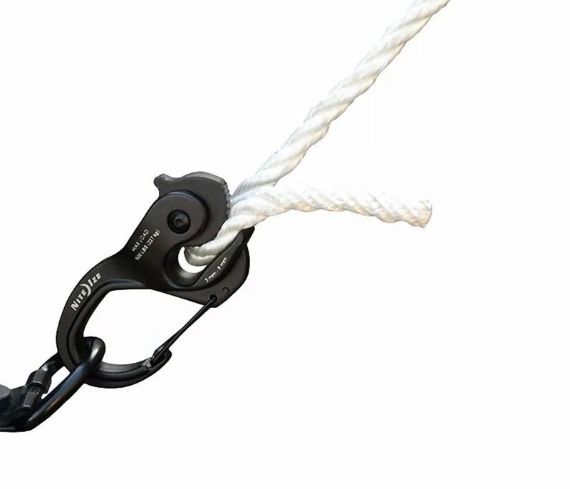 Su mecanismo de leva permite un ajuste rápido y sin nudos, mientras que su compatibilidad con cuerdas de 2 mm a 9 mm