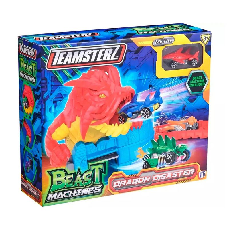 Playset Teamsterz Desastre Dragón con obstáculos y efectos de acción. Ideal para recrear misiones de rescate y destrucción