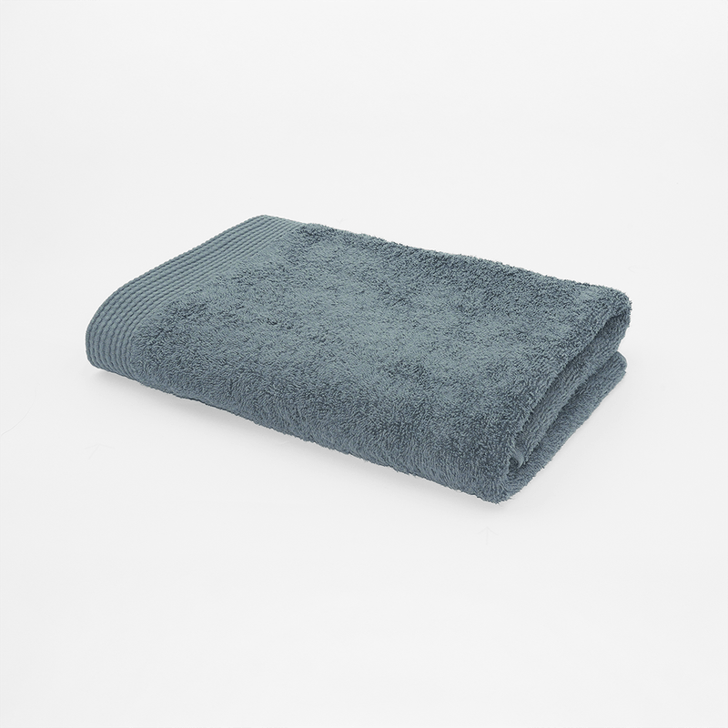 Toalla de visita en tono gris moderno. Su gramaje de 460 g ofrece una textura ligera, absorbente y de secado rápido.