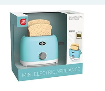 Esta tostadora incluye panecillos y sonido realista al bajar la palanca.